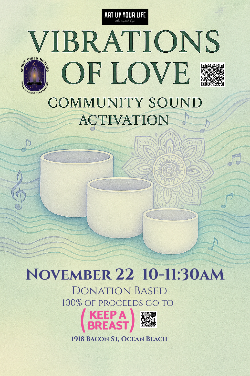 Join us for this special upcoming event - Vibrations of Love Community Sound Activation - being held at Art Up Your Life in Ocean Beach on Saturday, November 22, 2025.