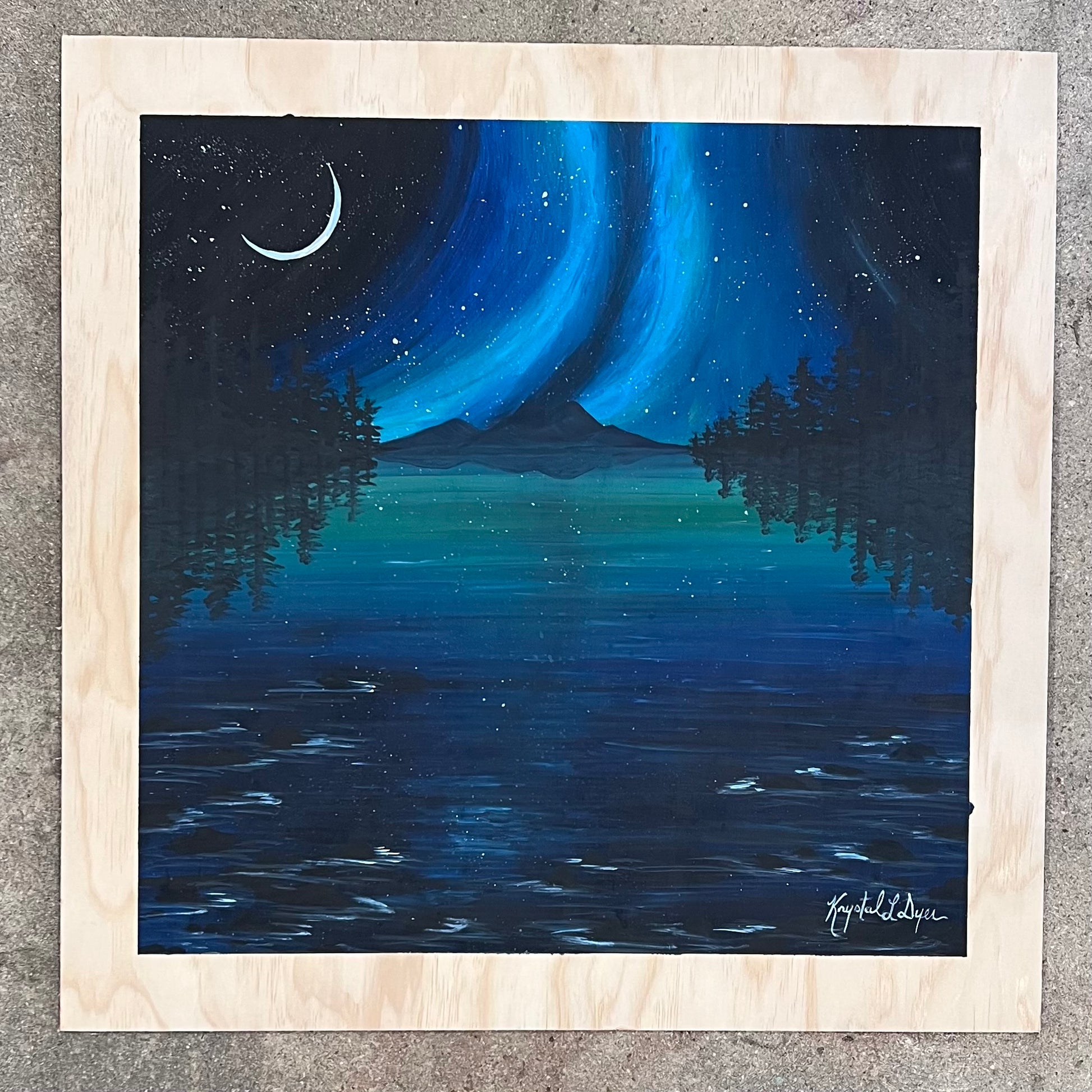 24 x 24” original acrylic on wood painted live at The Harp in Ocean Beach San Diego, California during The Man of the Forests and The Eternal Voyagers. This original painting is also signed by the entire band. There are no prints available of this piece.